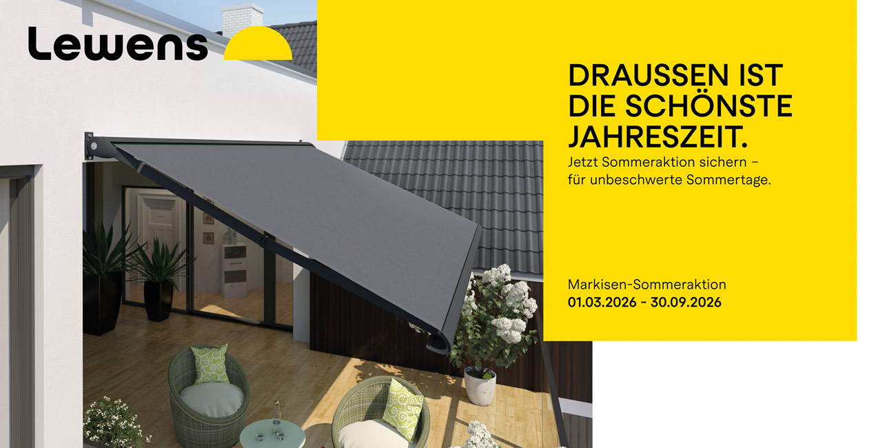 In dieser Saison bietet Lewens Ihnen drei ausgewählte Markisenmodelle inklusive Komfortausstattung zu Aktionspreisen: